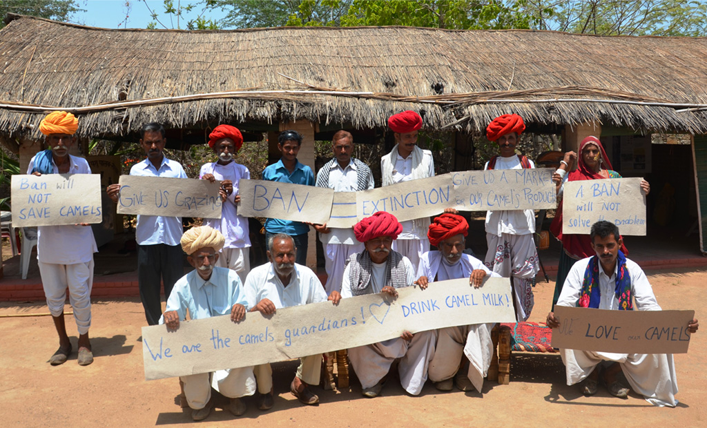Meet our camel milk producers: All of them are from the legendary Raika community and their families have kept camels for many generations. The Raika believe that their ancestor was created by God Shiva to take care of camels. So they feel a deep sense of responsibility towards the welfare of their herds and have held onto them for the last decade despite shrinking income.