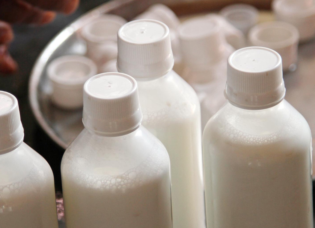 - The milk is delivered early in the morning by motorcycle. We accept only morning milk. After weighing it is checked for fat, water and non-solid fat content, then either pasteurised immediately, or chilled. After pasteurisation, the milk is bottled and then deep frozen. The bottle size is 200 ml corresponding to the daily dose recommended by many doctors.